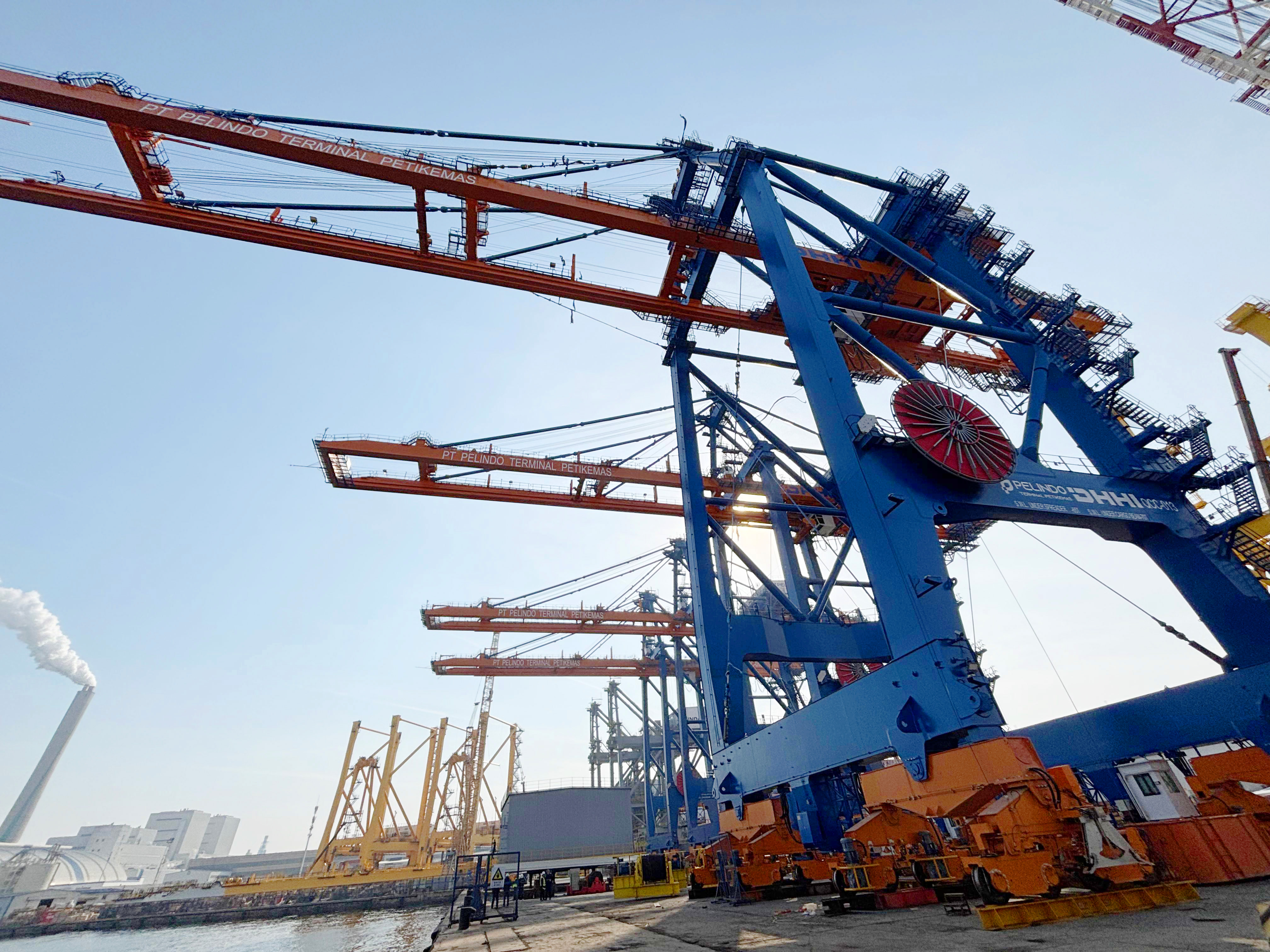 Caption foto: Sejumlah alat angkat bongkar muat peti kemas di dermaga pelabuhan atau quay container crane milik PT Pelindo Terminal Petikemas tengah dalam proses produksi. Alat-alat tersebut diperkirakan tiba di tanah air secara bertahap pada semester II tahun 2026