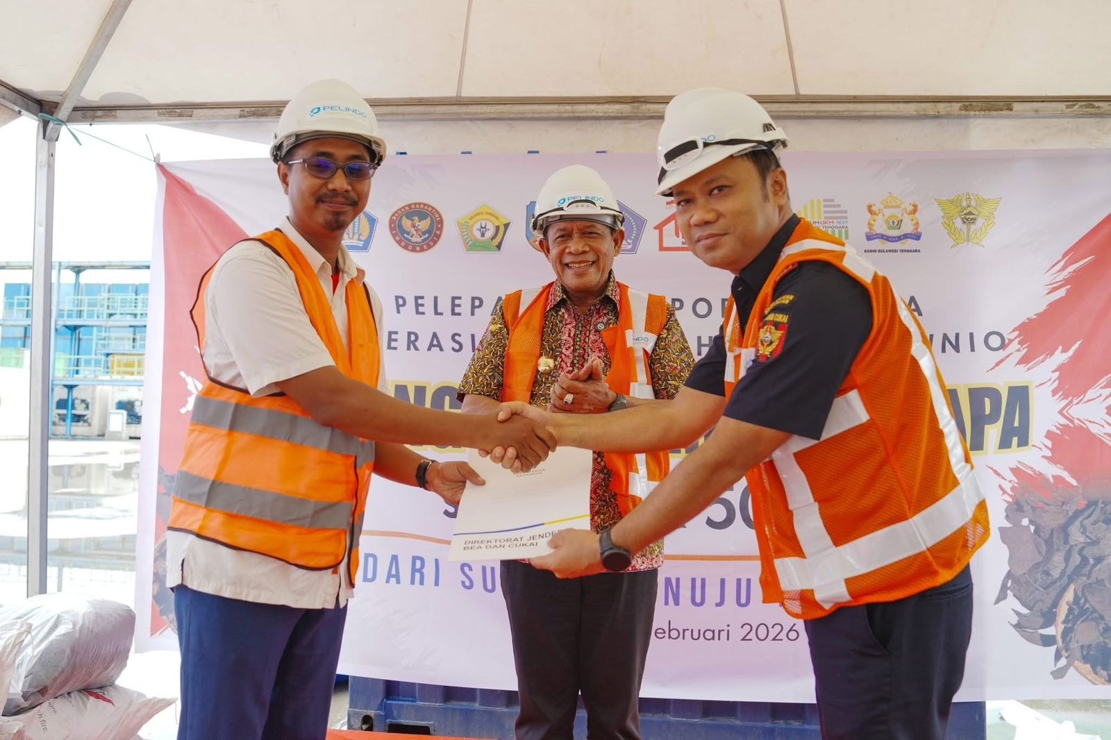Kendari (24/02) – Koperasi Desa Merah Putih Awunio, Kecamatan Kolono, Kabupaten Konawe Selatan, mencatatkan sejarah baru dengan melakukan ekspor perdana 50 ton arang tempurung kelapa ke China melalui Terminal Peti Kemas (TPK) Kendari, Sabtu (21/2/2026). Pelepasan ekspor secara resmi dilakukan oleh Wakil Gubernur Sulawesi Tenggara, Hugua.