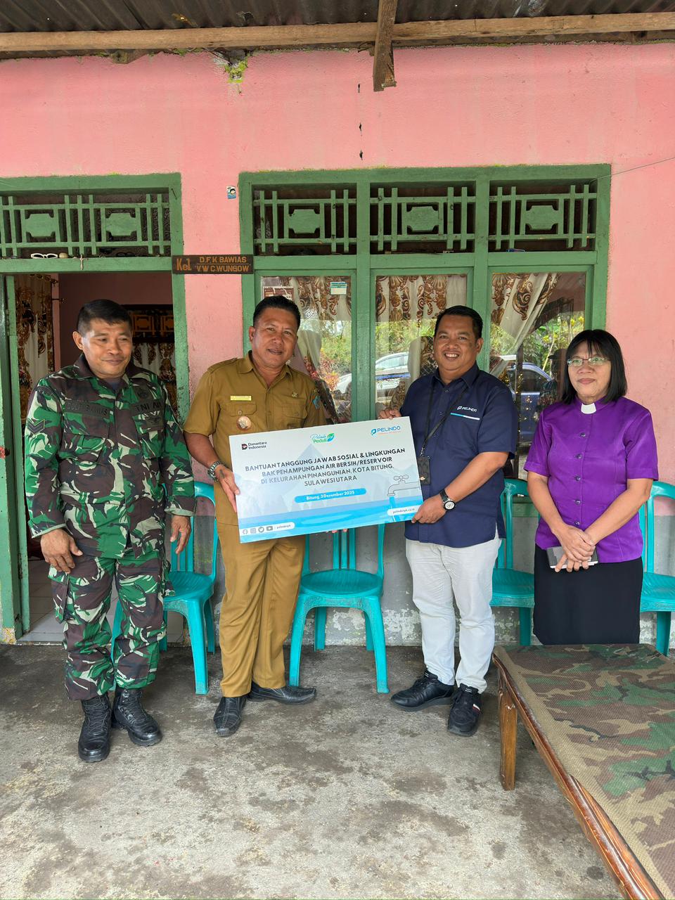 Bitung (23/12/2025) - PT Pelindo Terminal Peti Kemas (TPK) Bitung menyerahkan secara simbolis bantuan bak penampungan air bersih (reservoir) di Kelurahan Pinangunian, Kecamatan Aertembaga, Bitung. Penyerahan bantuan bak air itu sebagai bentuk nyata Pelindo dalam mendukung pembangunan sosial di daerah.