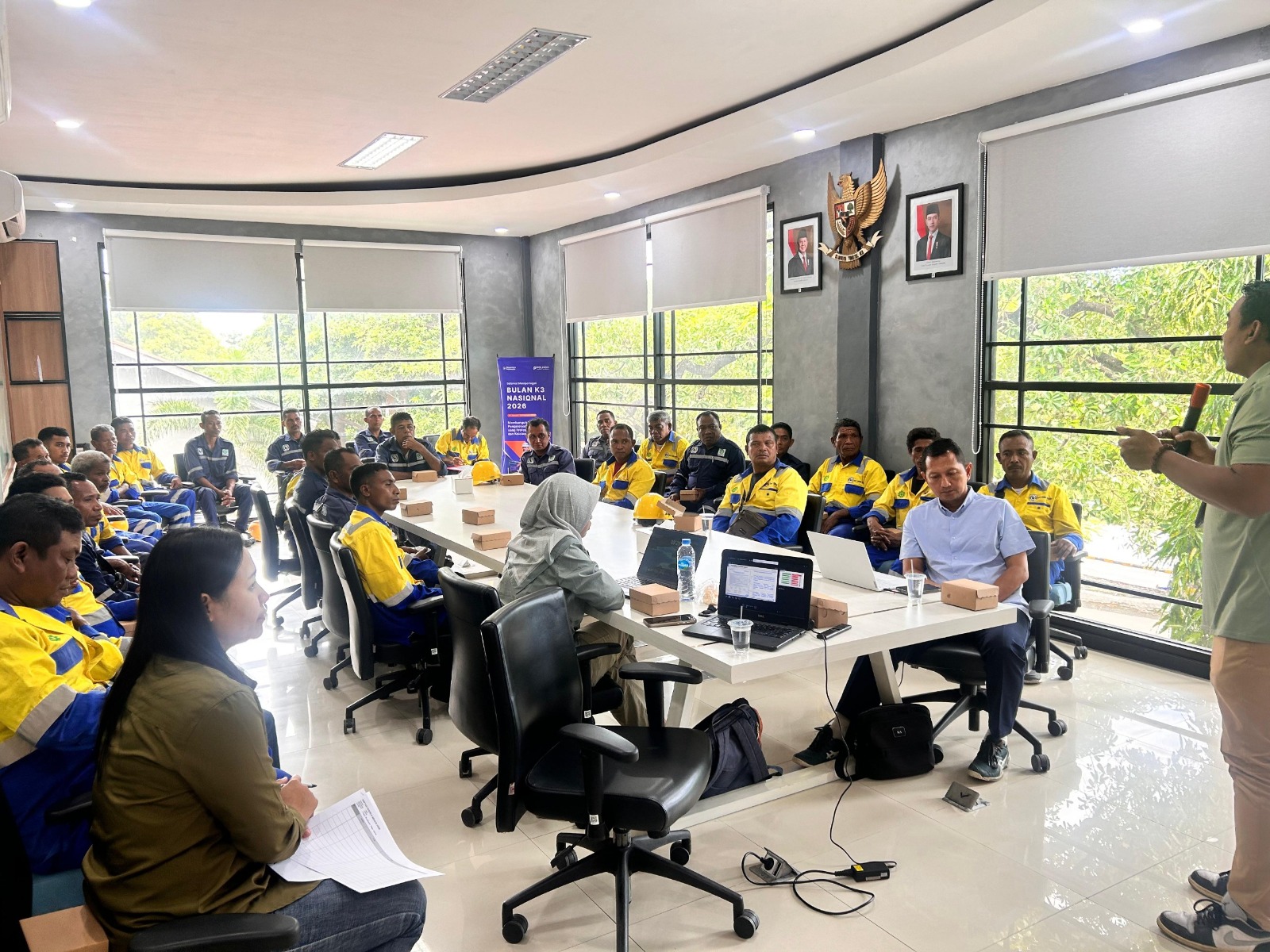 Kegiatan ini bertujuan untuk menyegarkan kembali pemahaman para pekerja mengenai pentingnya penggunaan Alat Pelindung Diri (APD) secara konsisten, penerapan prosedur komunikasi yang jelas dan terstruktur selama proses bongkar muat, serta langkah-langkah mitigasi risiko kecelakaan kerja di lingkungan terminal yang memiliki tingkat risiko tinggi.